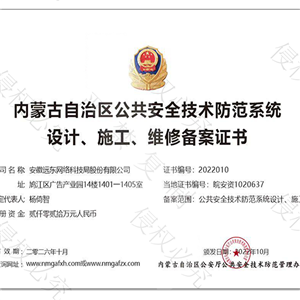 内蒙古自治区公共安全技术防范系统设计、施工、维修备案证书